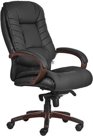 Főnöki szék, valódi bőr kárpitborítás, festett, fa utánzatú műanyag lábkereszt, "Buffalo HX", fekete