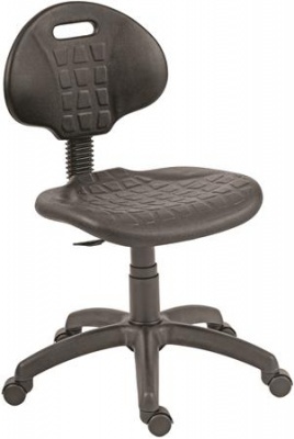 Munkaszék, gázliftes, háttámlás, műanyag ülőfelület és támla, fékező görgőkkel "1290", fekete