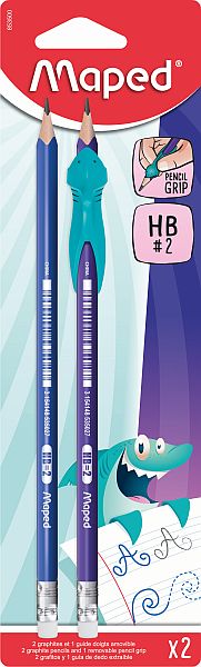 A 2 db-os kiszerelésben elérhető HB grafitceruzák mellett helyet kapott egy cápaformájú levehető ceruzafogó is. A tanárok által is ajánlott eszköz elragadó kinézetével vidám hangulatot teremt a tanuláshoz, az ügyes kezek játékosan sajátíthatják el az írás tudományát. Finoman illeszkedik a kicsi ujjakhoz, ezáltal megtanítja a ceruzák helyes fogását írás és színezés közben egyaránt. Minden szabványos ceruzához alkalmas, emellett jobb és balkezesek számára is ajánlott.
