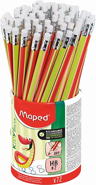 Egy minőségi ceruza alapvető fontosságú az írás, rajzolás, tanulás szempontjából, hiszen a szabadság és alkotás erejével ruházza fel a gyerekeket. A MAPED az új „Kidy Learn” termékcsalád tagjaival gondoskodik a szórakoztató és játékos írástanulásról! A famentes, ellenálló heggyel rendelkező grafitceruza kialakítása révén precízen illeszkedik az apró kezekbe, ergonomikus, háromszög formája kényelmes használatot biztosít.