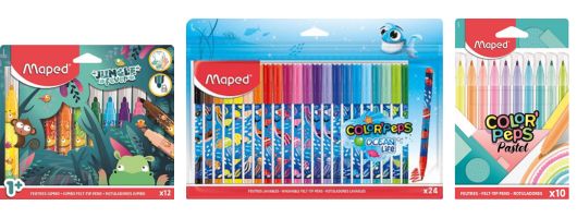 A gyerekek körében népszerű eszközök szórakoztató kikapcsolódást nyújtanak. A Jumbo méretben elérhető „Jungle Fever” kollekció filctollai tökéletesen illeszkednek a kis kezekbe. Az óceán ihlette mintába borított „Color`Peps Ocean Life” filctollakkal a színezés is örömtelibb. Ruhából könnyen kimosható, bőrről könnyen eltávolítható vízbázisú tintája igazán vonzóvá varázsolja. A lágy, pasztellszíneket filctoll formájában is élvezhetjük a „Color`Peps Pastel” 10 darabos készlettel.