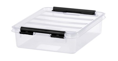 KezdőlapIrodaszerekCsomagolás, tárolásTárolódobozok, ládák és kosarakMűanyag tárolódoboz, 1 liter, fekete fogantyúkkal, SMARTSTORE "Classic 1", átlátszó