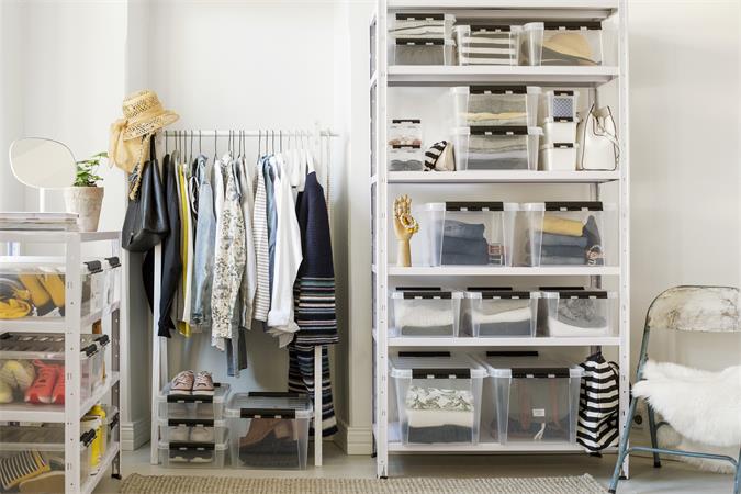 Műanyag tárolódoboz, 47 liter, fekete fogantyúkkal, SMARTSTORE "Classic 45", átlátszó