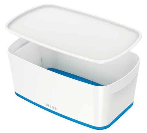 Tároló doboz, fedővel, kicsi, LEITZ "MyBox", fehér-kék