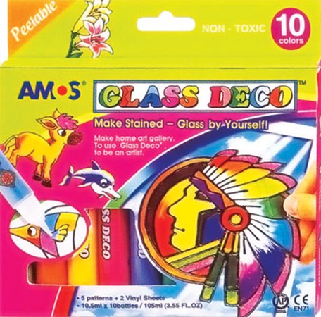 Üvegfóliafesték készlet, AMOS, 10 különböző szín