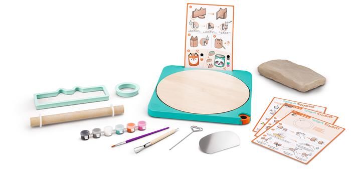 A könnyen használható, kézzel hajtható és szabályozható korongozó készlettel kevesebb szennyeződés keletkezik. A gyerekek egyszerűen készíthetnek eredeti és lágy mintákkal díszített kerámiákat.
