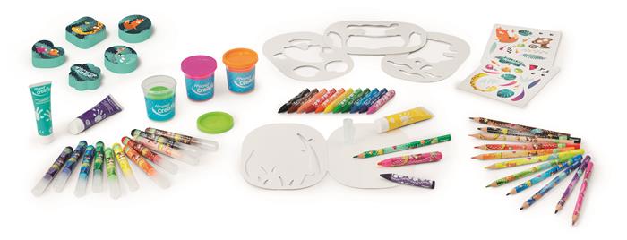 Kifejezetten kisgyerekek számára tervezett készlet, amely több különböző kreatív eszközt tartalmaz.