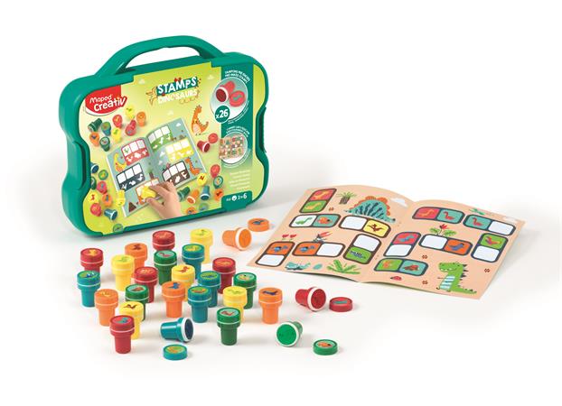 Nyomdázó készlet, foglalkoztató füzettel, bőröndben, dínó, MAPED CREATIV "Stamps"