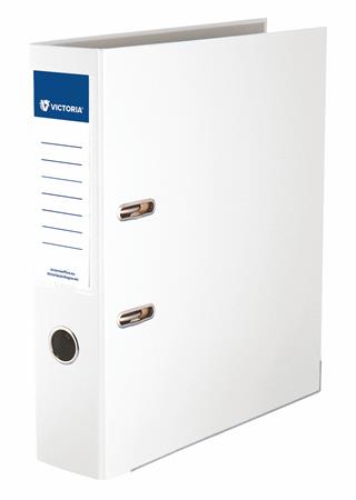 Iratrendező, 75 mm, A4, PP/karton, élvédő sínnel, VICTORIA OFFICE, "Basic", fehérAlapítvány támogatás 1 Ft