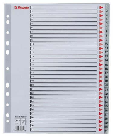 Regiszter, műanyag, A4 Maxi, 1-31, ESSELTE, szürke