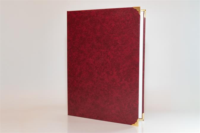 KezdőlapIrodaszerekIrodai kiegészítőkDokumentum tárolókOklevéltartó, A4, exkluzív, műbőr, 4 fém sarokkal, bordó
