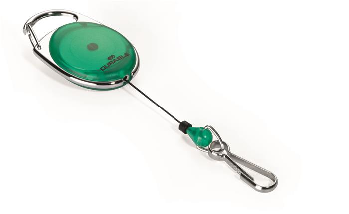 Azonosítókártya-tartó, kihúzható, karabineres, DURABLE "STYLE, zöld