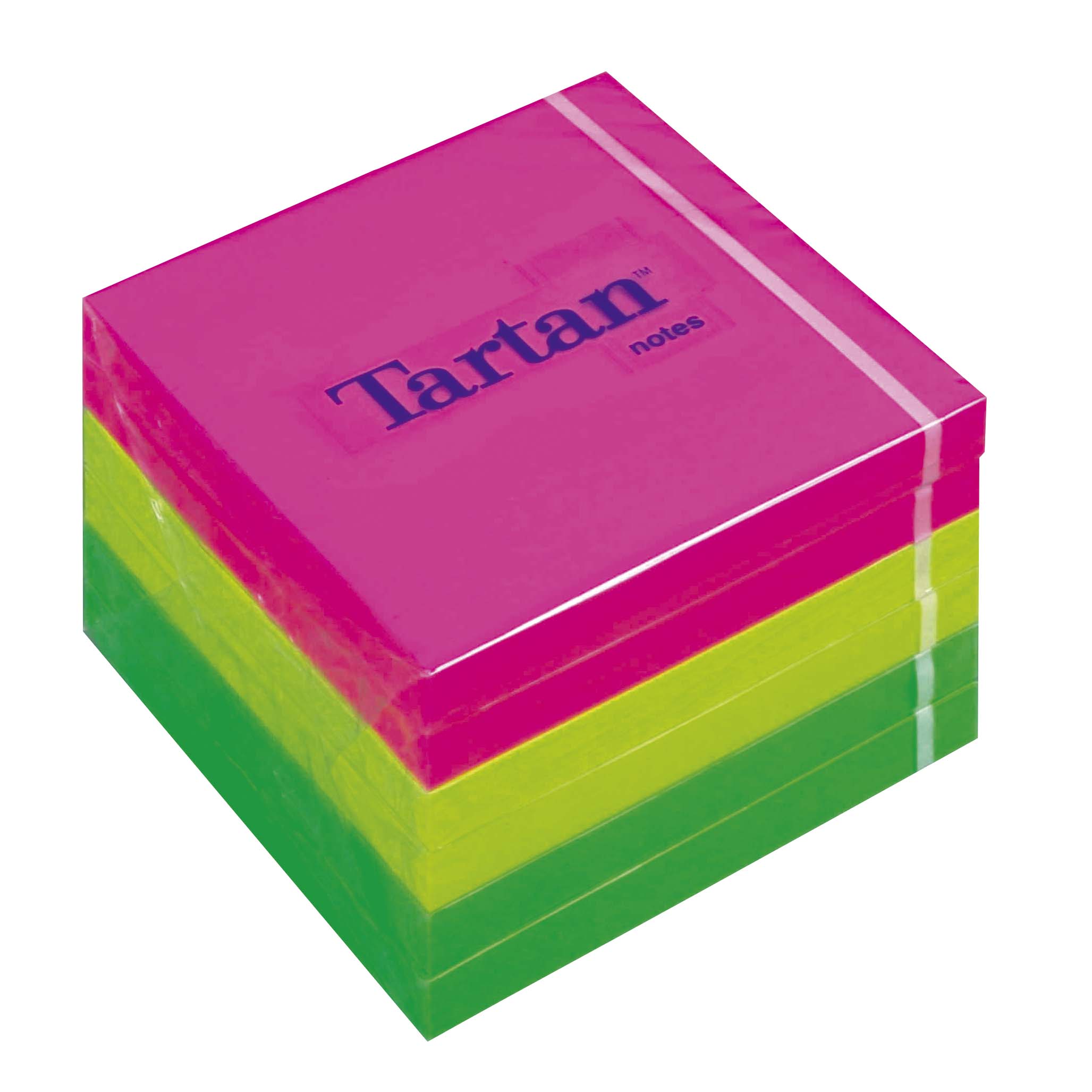 Öntapadó jegyzettömb, 76x76 mm, 100 lap, 6 tömb/cs, TARTAN, vegyes neon színek