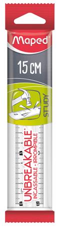 Vonalzó, műanyag, törhetetlen, 15 cm, MAPED "Study Unbreakable", átlátszó