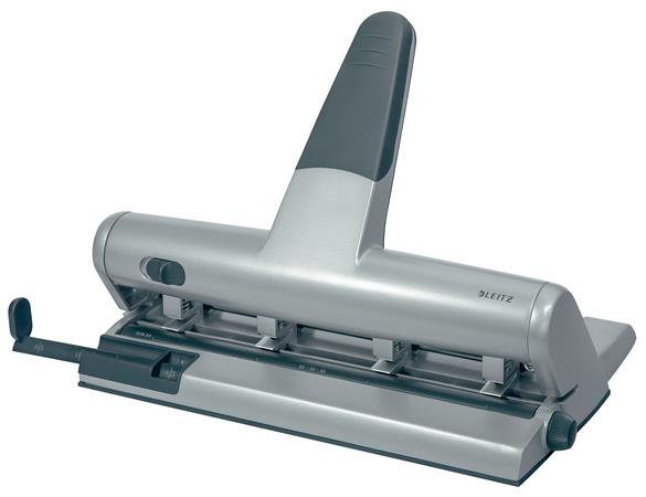 Lyukasztó, nagyteljesítményű, négylyukú, 30 lap, LEITZ "5114", ezüst