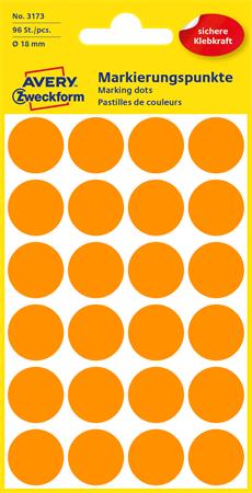 Etikett, 18 mm, kör, AVERY ZWECKFORM, neon narancs, 96 etikett/csomag