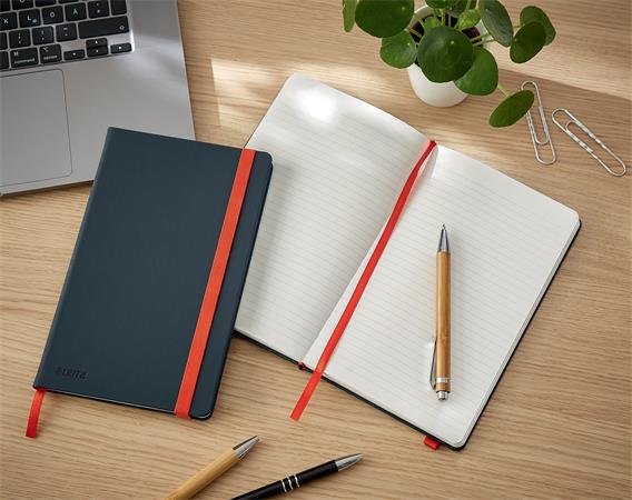 Beíró, A5, vonalas, 80 lap, keményfedeles, LEITZ "Cosy Soft Touch", bársonyszürke
