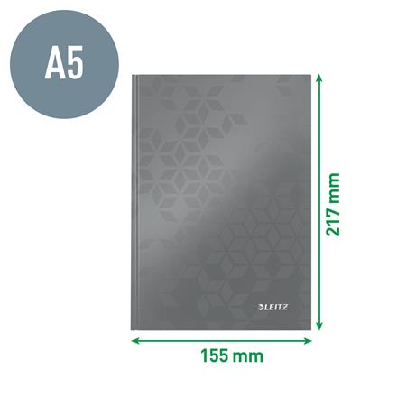Beíró, A5, vonalas, 80 lap, keményfedeles, LEITZ "Wow", kék
