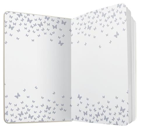 Jegyzetfüzet, exkluzív, 135x203 mm, vonalas, 87 lap, keményfedeles, SIGEL "Jolie" Butterfly Confetti, lime