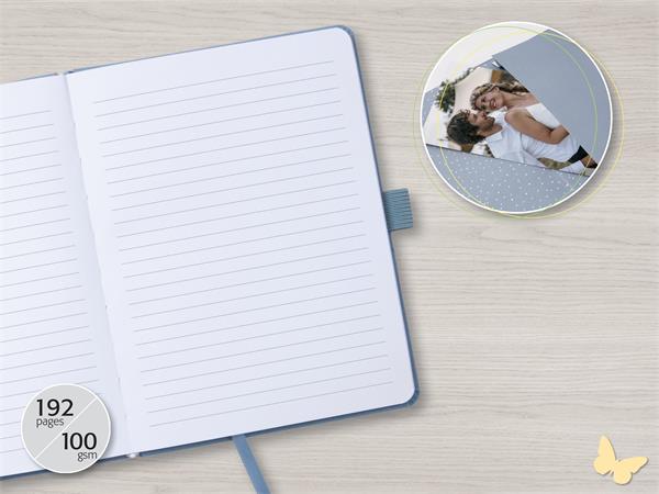 Gyönyörű jegyzetfüzet számos apró, praktikus részlettel.