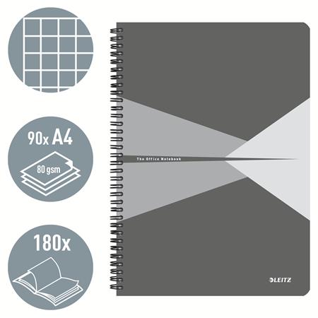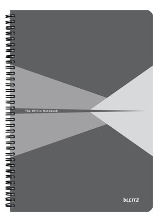 Spirálfüzet, A4, kockás, 90 lap, PP borító, LEITZ "Office", szürke
