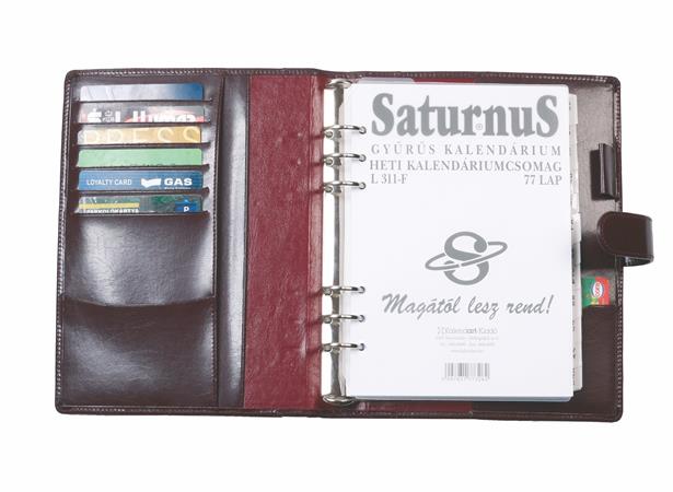 Kalendárium, gyűrűs, betétlapokkal, "L", újrahasznosított bőr, SATURNUS, "418", barna
