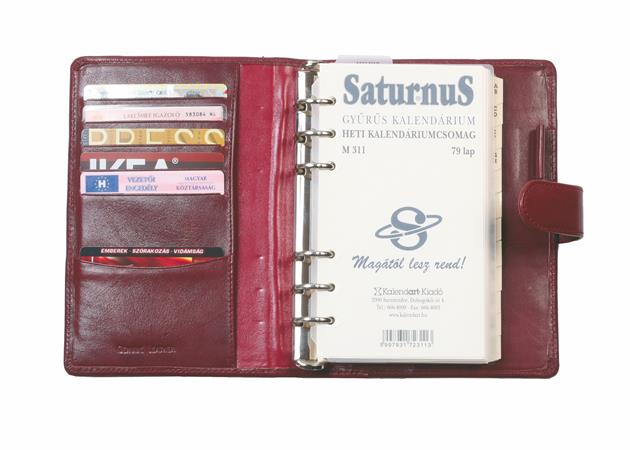 Kalendárium, gyűrűs, betétlapokkal, "M", marhabőr, SATURNUS, "212", fekete