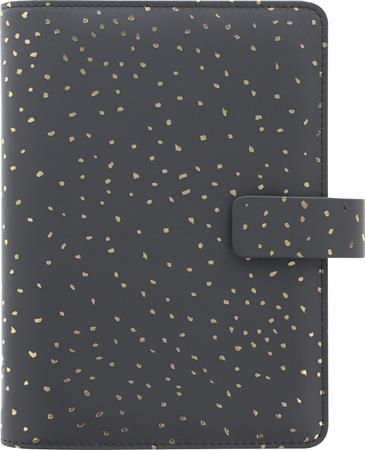 Kalendárium, gyűrűs, betétlapokkal, personal méret, FILOFAX, "Confetti", fekete
