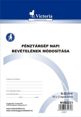 Nyomtatvány, pénztárgép napi bevételének módosító tételei, 25x2, A5, VICTORIA PAPER "B.22-31", 10 tömb/csomag