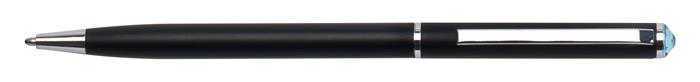 Golyóstoll, fekete "SLIM", aquakék SWAROVSKI® kristállyal, 13 cm, ART CRYSTELLA®