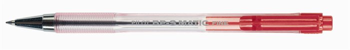 Golyóstoll, 0,27 mm, nyomógombos, átlátszó tolltest, PILOT "BP-S Matic", piros