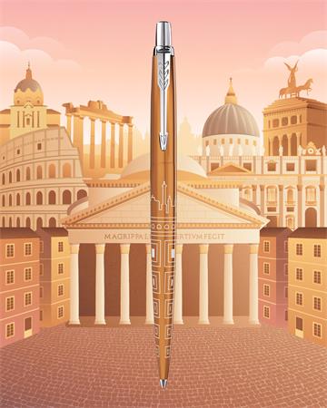 Golyóstoll, 0,7 mm, ezüst színű klip, mintás tolltest, PARKER, "Royal Jotter Róma", kék