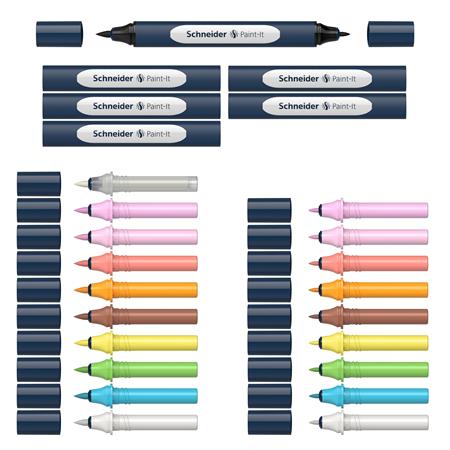 Kétvégű marker készlet, 27 darabos, SCHNEIDER "Paint-It 040 Twin marker Set 2", 10 különböző szín