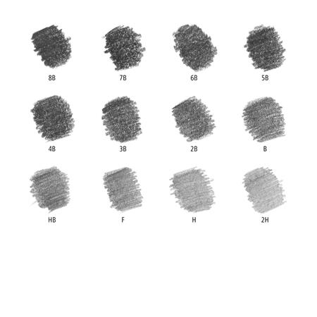 -a doboz tartalma: 12 db puha grafitceruza: 8B, 7B, 6B, 5B, 4B, 3B, 2B, B, HB, F, H, 2H