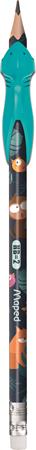 Grafitceruza radírral, HB, háromszögletű, ceruzafogóval, MAPED "Jungle Fever", kétféle minta
