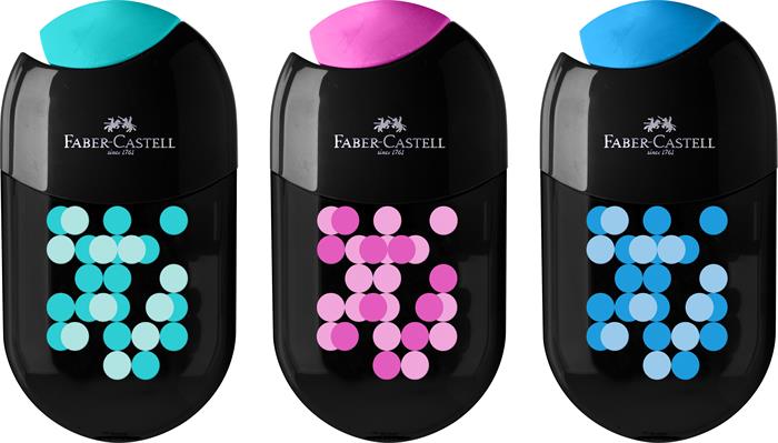 KezdőlapIrodaszerekÍrószerekHegyezőkHegyező display, kétlyukú, 2 tartályos, FABER-CASTELL, vegyes színek