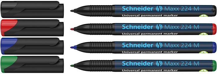 Alkoholos marker készlet, OHP, 1 mm, SCHNEIDER "Maxx 224 M", 4 különböző szín