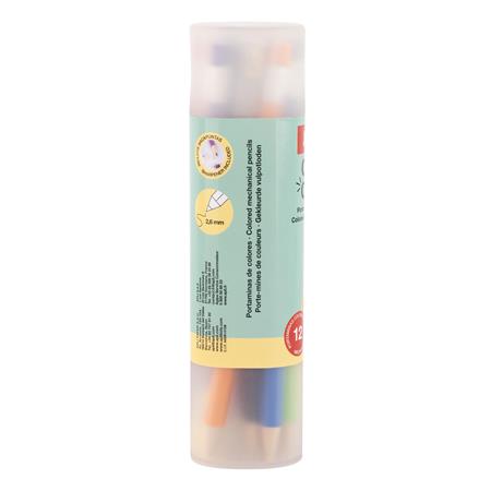 -a szett tartalma: 12 különböző színű töltőceruza a hozzá tartozó 12 színű heggyel és 1 hegyezővel