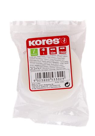 Ragasztószalag, írható, 12 mm x 33 m, KORES "Invisible", áttetsző