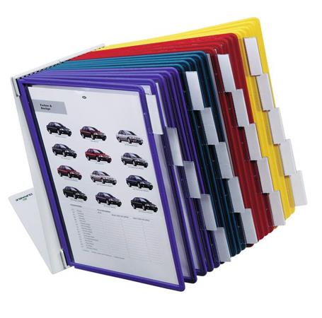KezdőlapTechnológiaPrezentációAsztali és fali bemutatótáblákBemutatótábla tartó, asztali, 20 db bemutatótáblával, DURABLE "VARIO®", vegyes színek