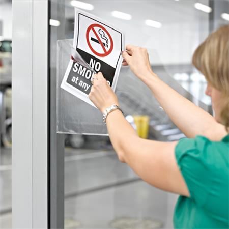 a bemutatótábla a felső és a jobb oldalán nyitható, így bármilyen A4 méretű dokumentum ki-és behelyezése egyszerű