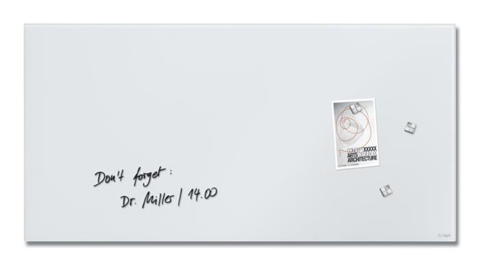 Mágneses üvegtábla, 91x46x1,5 cm, SIGEL "Artverum® ", szuper fehér, matt