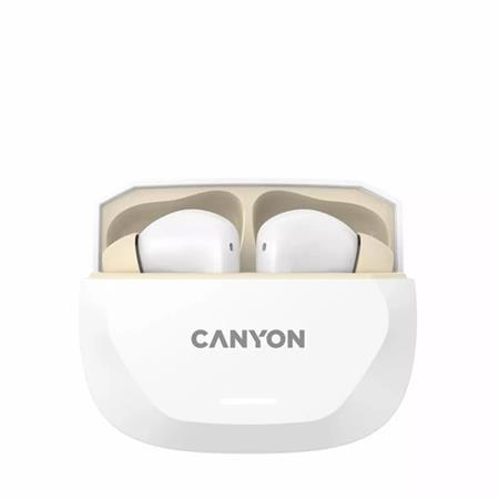Fülhallgató, TWS vezeték nélküli, Bluetooth 5.4, CANYON "Hexagon 7", fehér-bézs