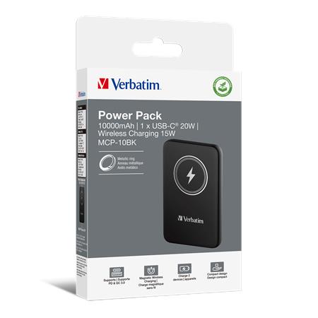 Power bank, mágneses (vezeték nélküli), 10.000mAh, VERBATIM "MCP-10, fekete