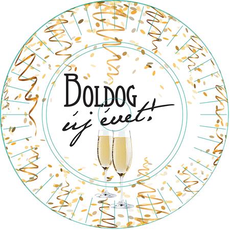 Tányér, papír, 23 cm, "Boldog Új évet"