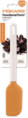 Aszimmetrikus tésztakaparó, mellyel könnyen kitörölhető az edény fala