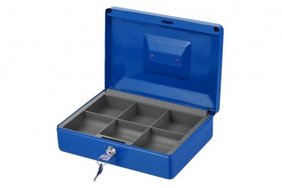 Pénzkazetta, 250x180X90 mm, VICTORIA FACILITY, kékAlapítvány támogatás 10 Ft