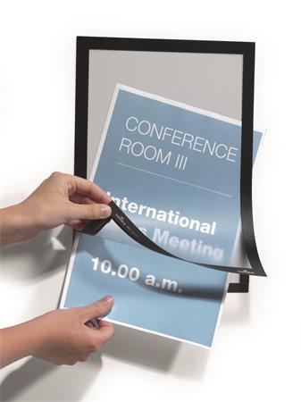 Információk magas színvonalú és professzionális megjelenítése. A DURAFRAME® segítségével profin és kényelmesen helyezhetjük ki dokumentumainkat. Segédeszközök nélkül egyszerűen felhelyezhető sima, teherbíró felületekre. Pl. üvegről visszaszedhető.