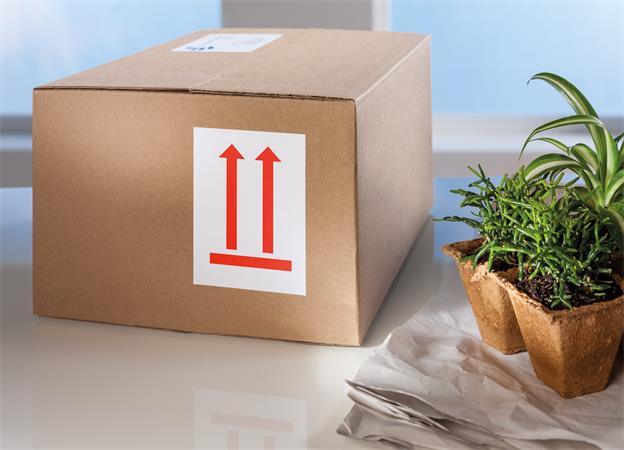 "A nyíllal megegyező irányba állítandó" ikonnal (felfelé mutató dupla nyíl) nemzetközileg is érthetőek, tökéletesen alkalmasak a nemzetközi szállításhoz szükséges küldemények és csomagok címkézésére.