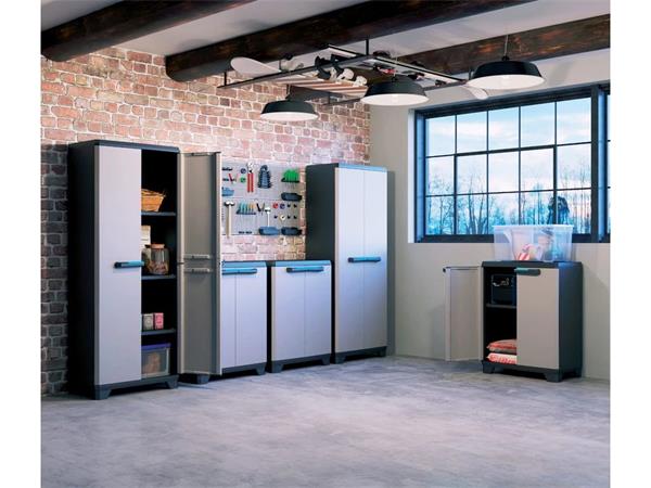 Szerszámtároló szekrény, alacsony, műanyag, KETER "Linear", fekete-szürke